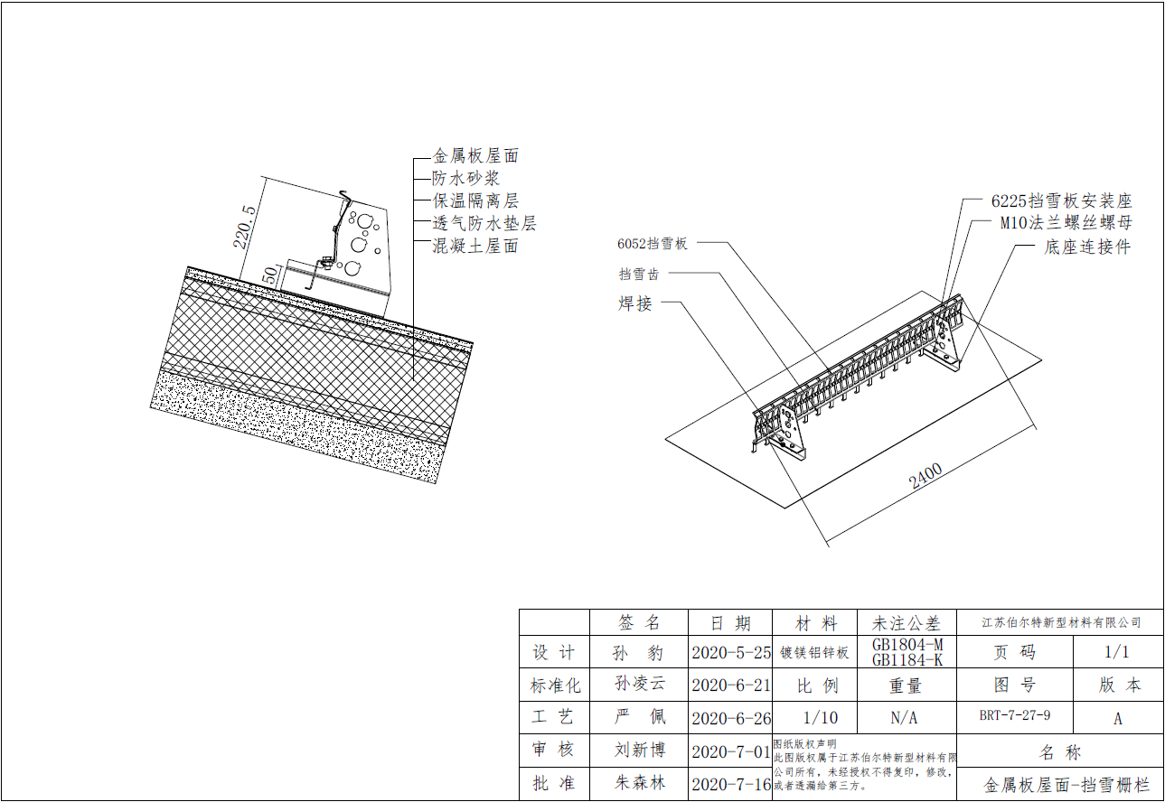 金屬板屋面擋雪柵欄+